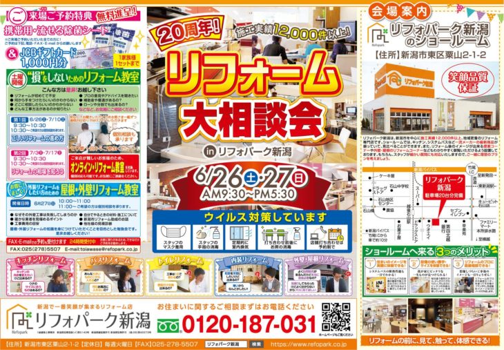 (会場:リフォパーク新潟ショールーム) 詳しくはこちら >