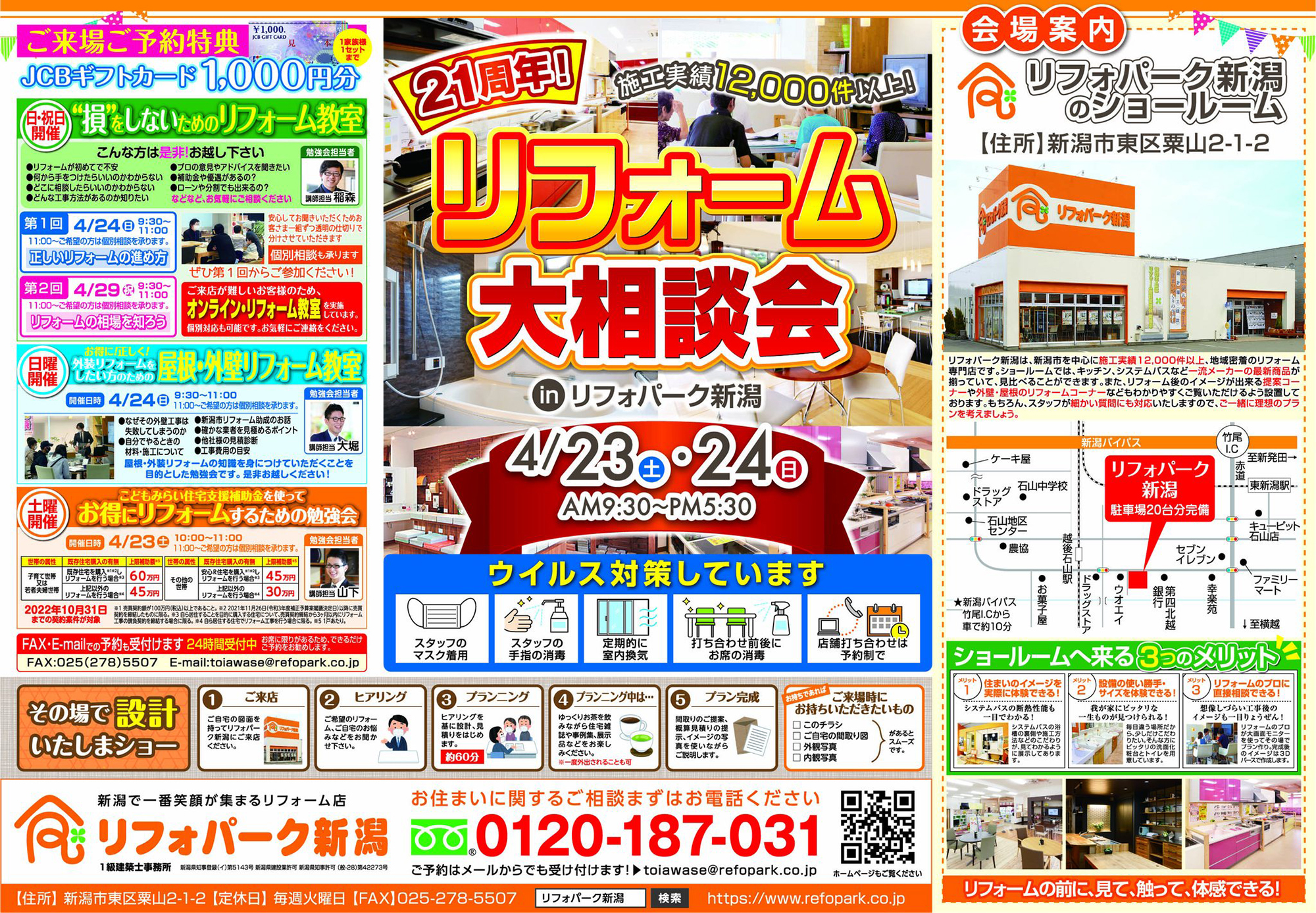 (会場:リフォパーク新潟ショールーム) 詳しくはこちら >