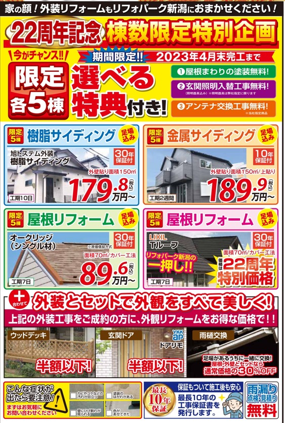22周年を記念した、5棟限定の外装リフォーム特典もあります!