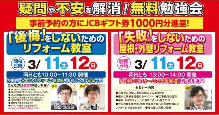 (会場:リフォパーク新潟ショールーム) 詳しくはこちら >