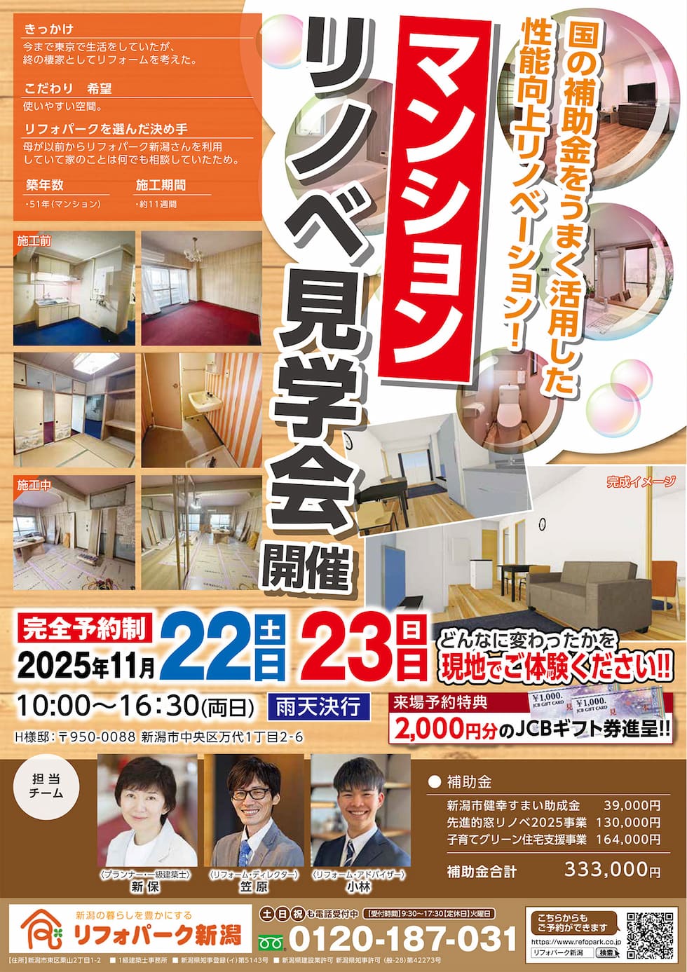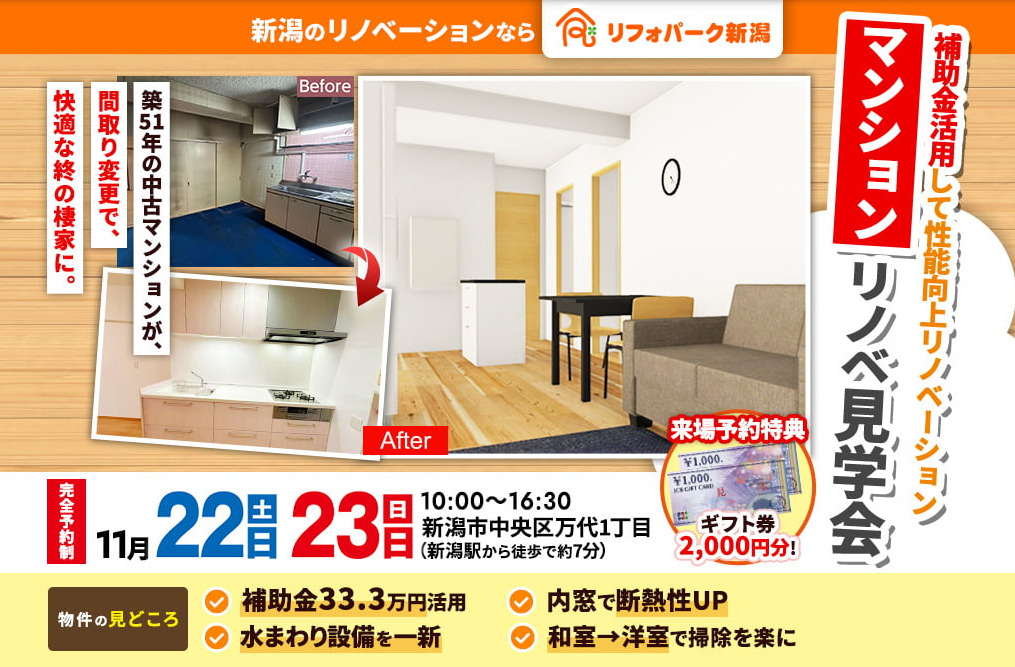 ご予約特典として2000円分のJCBギフト券プレゼント企画もご用意しています。 この機会にぜひ、リノベーション完成現場見学会にご参加ください。皆様のご来場を心よりお待ちしております!