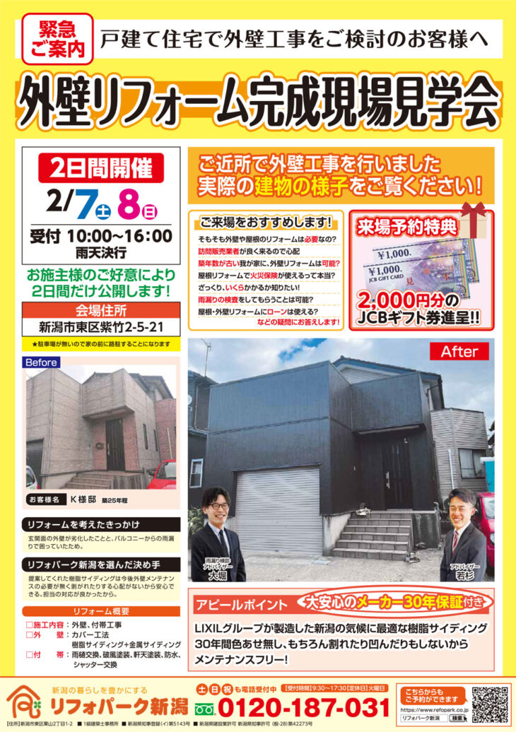 【2月7日・8日】外壁&屋根リフォーム完成現場見学会 開催!