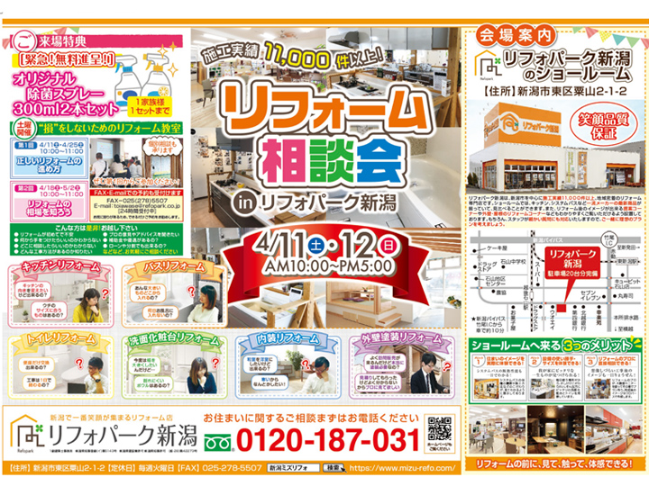 リフォームパーク新潟で、リフォーム相談会を実施いたします。