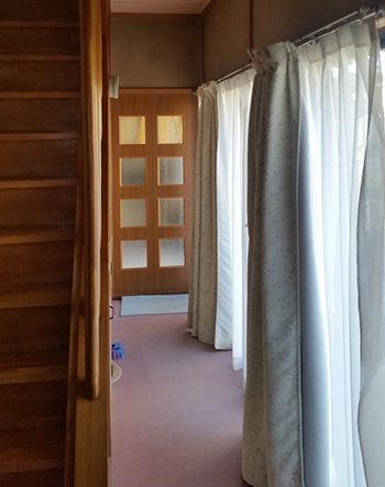 午前中光が入りすぎる掃出し窓。カーテンを閉めることが多かったようです。