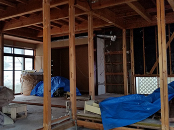 キッチン、和室の2部屋解体しました。この空間がLDKに変わります。