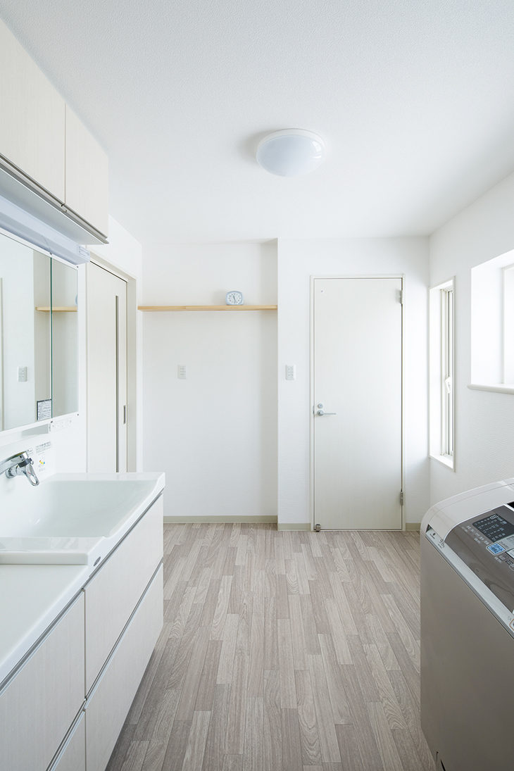 洗面脱衣室は隣が公園で遮るものがないので明るいです。