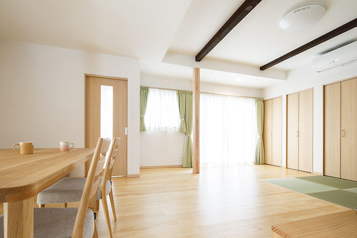キッチン隣の和室です。和室2部屋をつなげて広々としたLDKにしたいとのご要望でした。