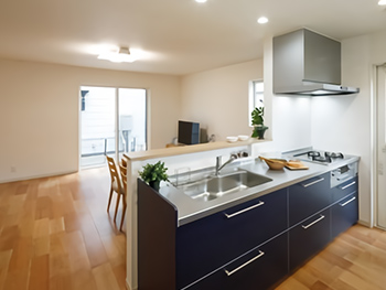 キッチンの正面には窓があり、差し込む光が明るい食卓を演出します。