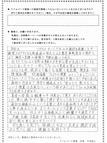 奥様の住みやすさを考えてリフォームを決められました。