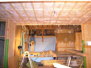 天井に断熱材を詰めていきます。