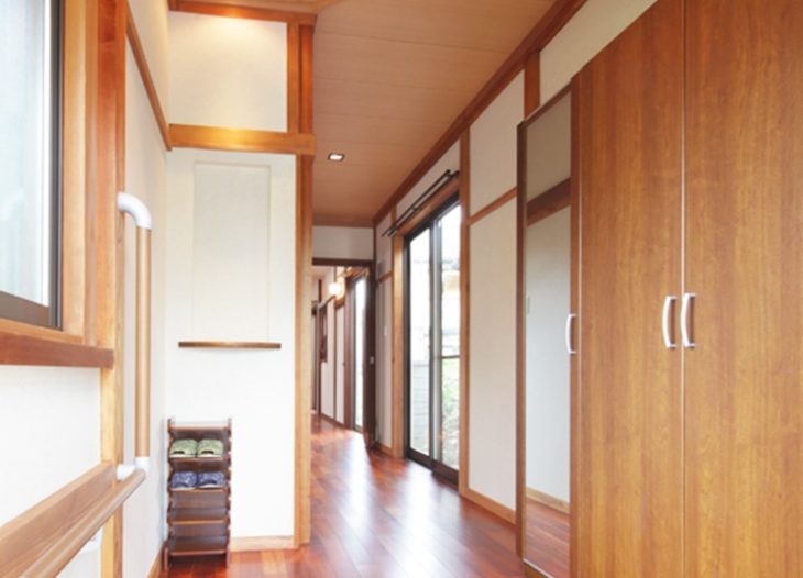 玄関までの廊下も気の素材を使った、温かみのある空間となりました。