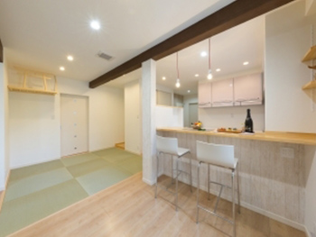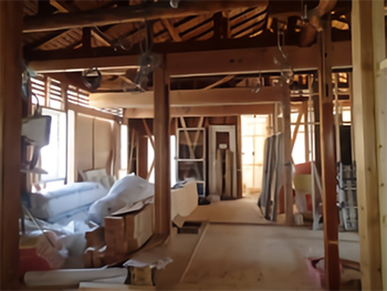 玄関からLDK側です。梁や柱を新しく取り付けました。