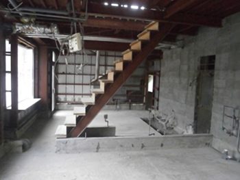 階段の向こう側は床屋さんだった空間です。